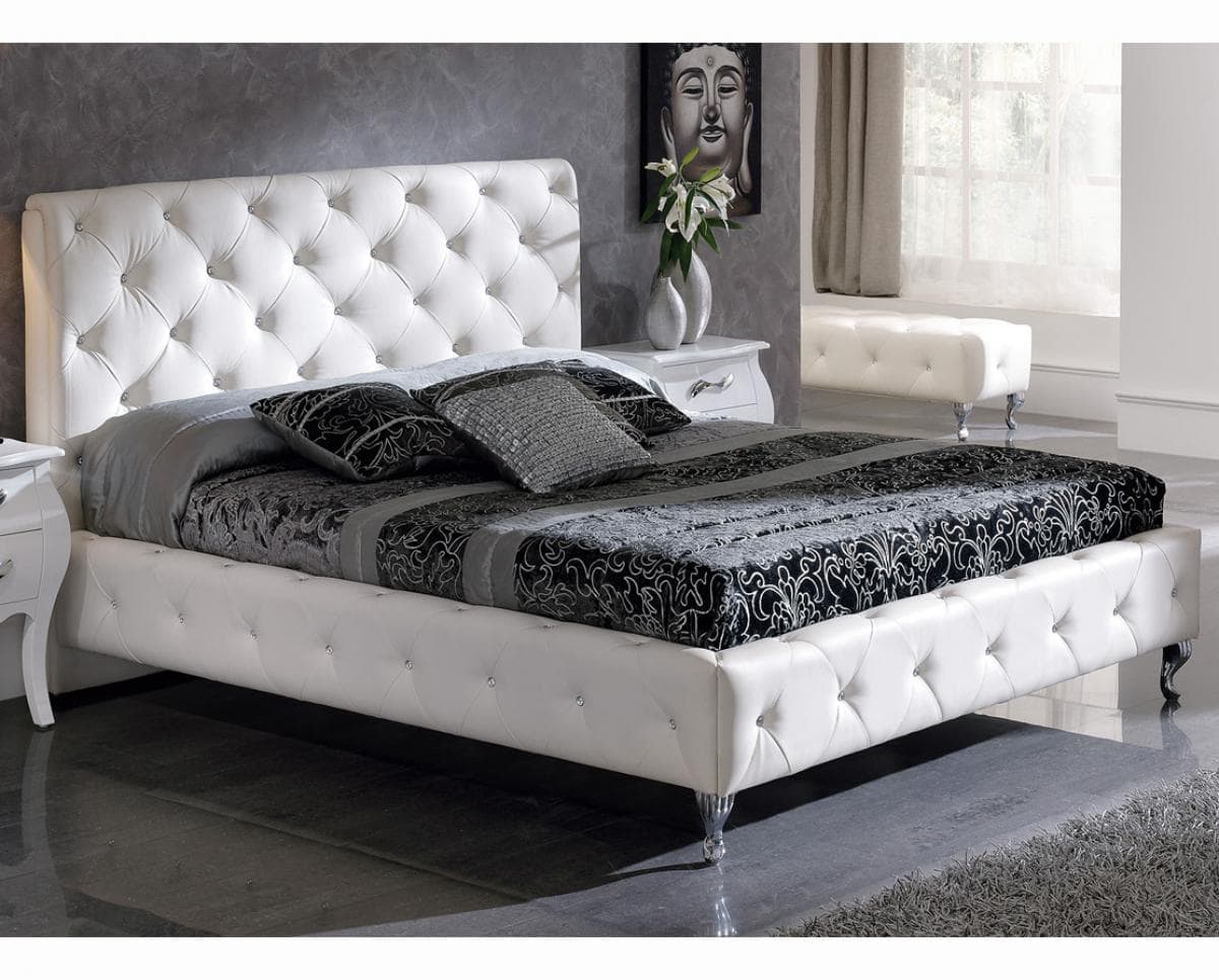 El cabecero polipiel blanco Kelly puede combinarse con la cama Kelly tapizada en polipiel abotonada. El resultado es un llamativo conjunto de dormitorio tremendamente elegante y armonioso.