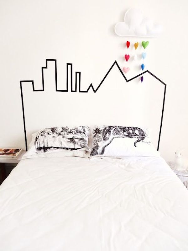 La opción más económica y que permite más variaciones. El washi tape es un celo hecho de papel y que se despega fácilmente sin dañar las superficies. Puedes cambiar el diseño cada semana si te apetece o incluso dejar que sean los niños los que diseñen sus propios cabeceros originales.