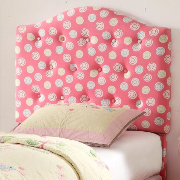 No todos los cabeceros infantiles tienen por qué ser «de niños". A muchos les gusta tener una decoración similar a las de las habitaciones de mayores adaptada a sus gustos y colores favoritos. El cabecero de la imagen es un clásico capitoné actualizado con una tela infantil muy moderna.