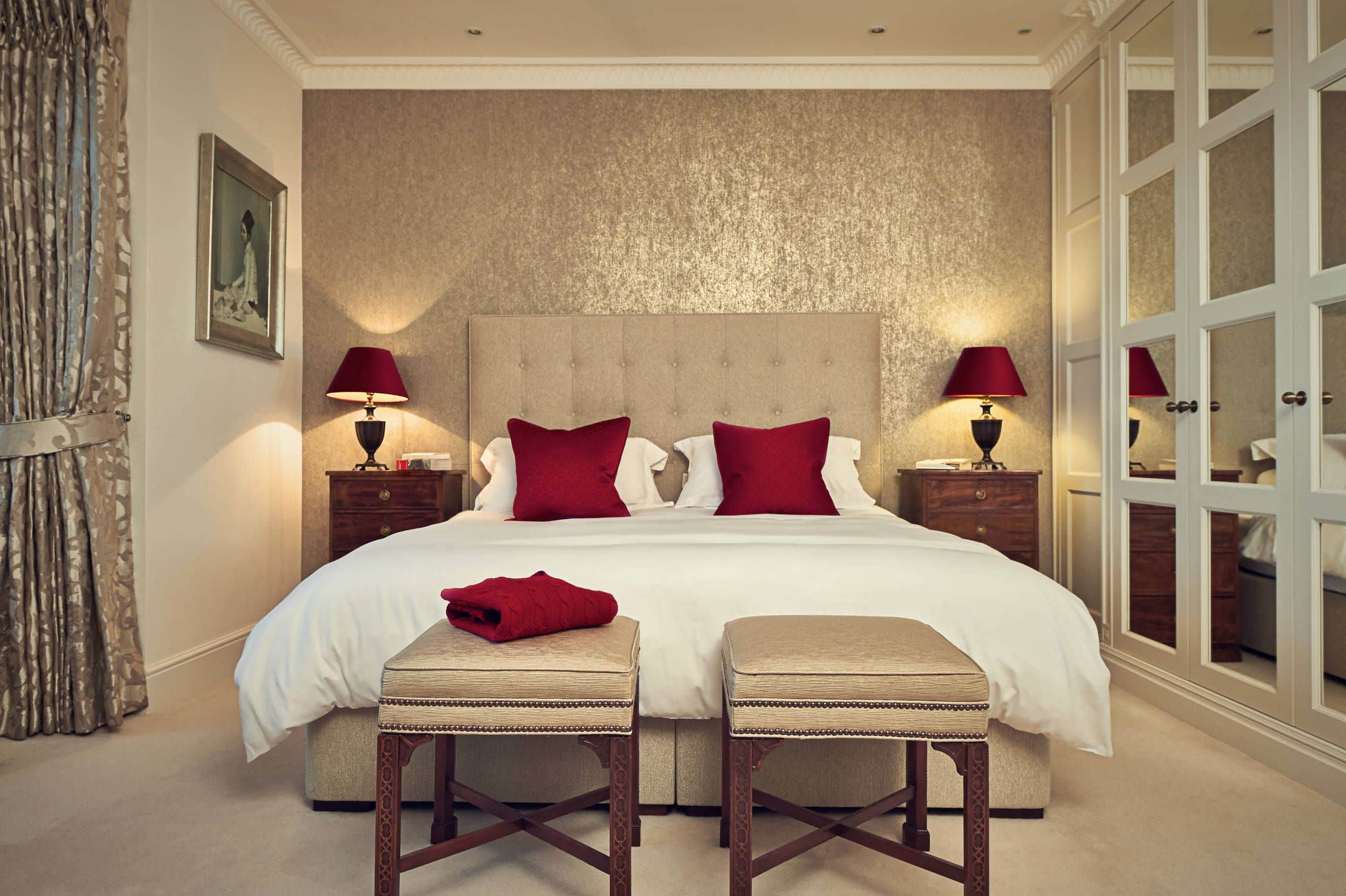 La iluminación adecuada puede transformar por completo una habitación. No olvides añadir lámparas a los lados de la cama y una iluminación general suave.