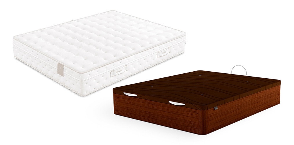 El resultado es una cama más elevada, de unos +/- 69 cm aproximadamente y una mayor capacidad de almacenamiento en el interior del canapé. Pero en cuanto a prestaciones y características exteriores, ambos modelos, el Madera 19 y el Madera 25, son muy parecidos y de precios bastante similares. Decantarse por un modelo o por otro suele depender de la altura total de equipo de descanso que busquen los clientes. Puedes encontrar más información sobre este pack, aquí.